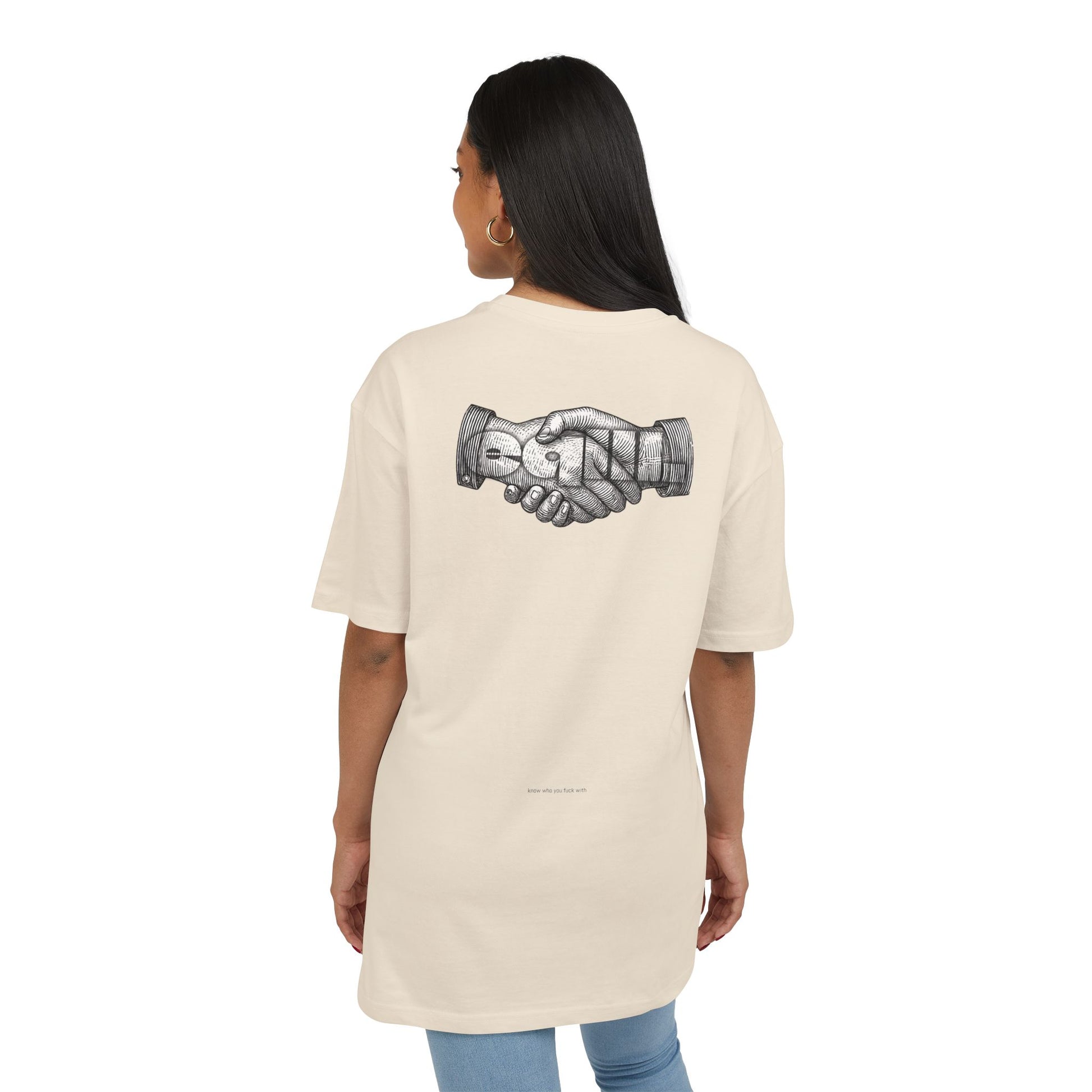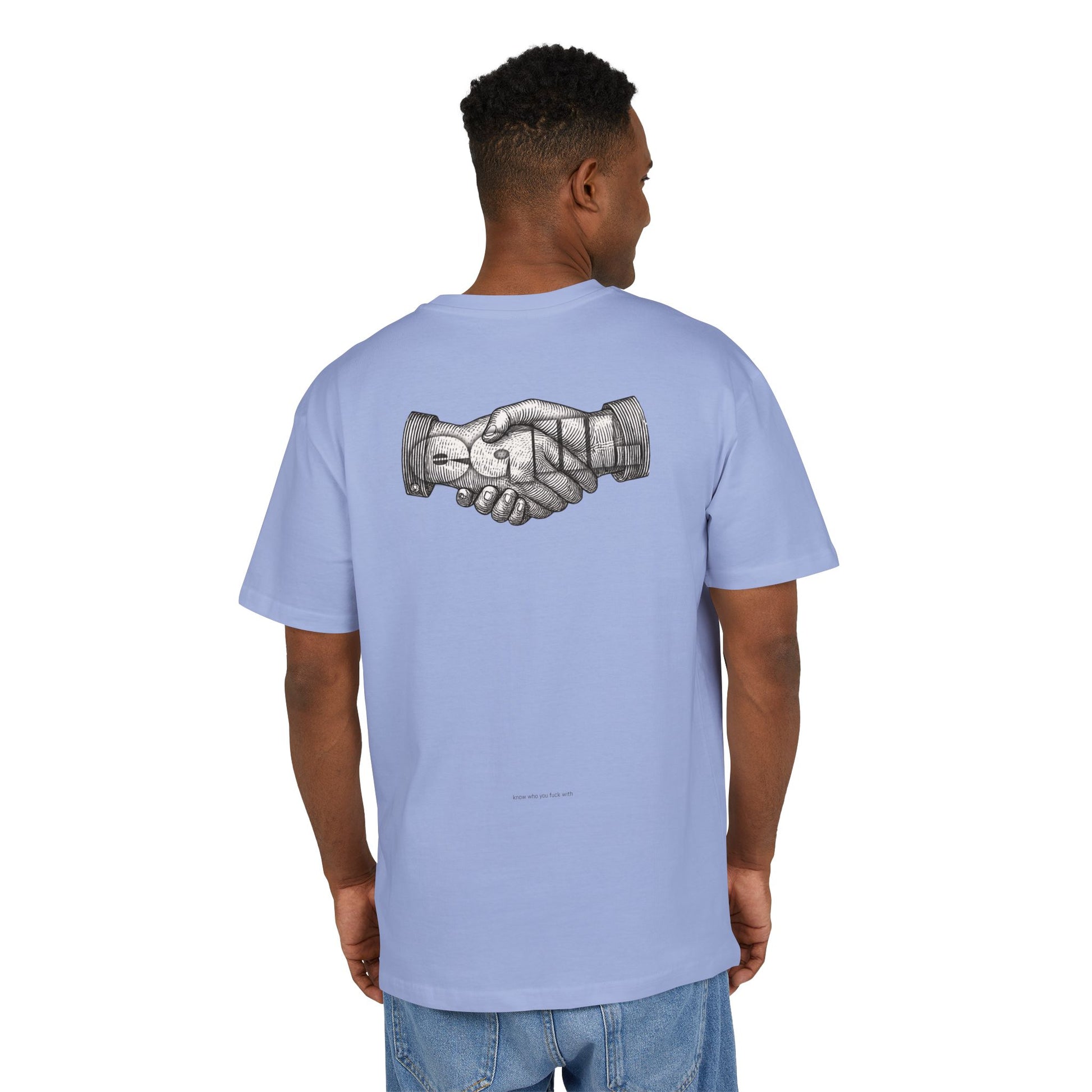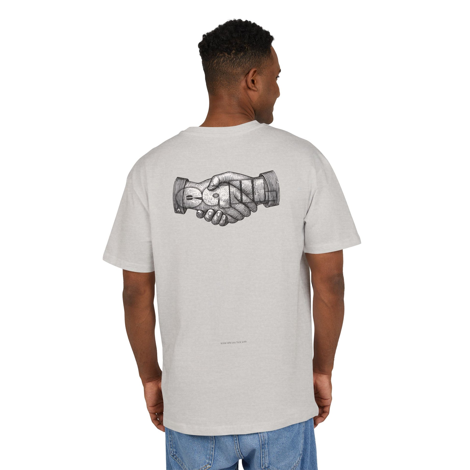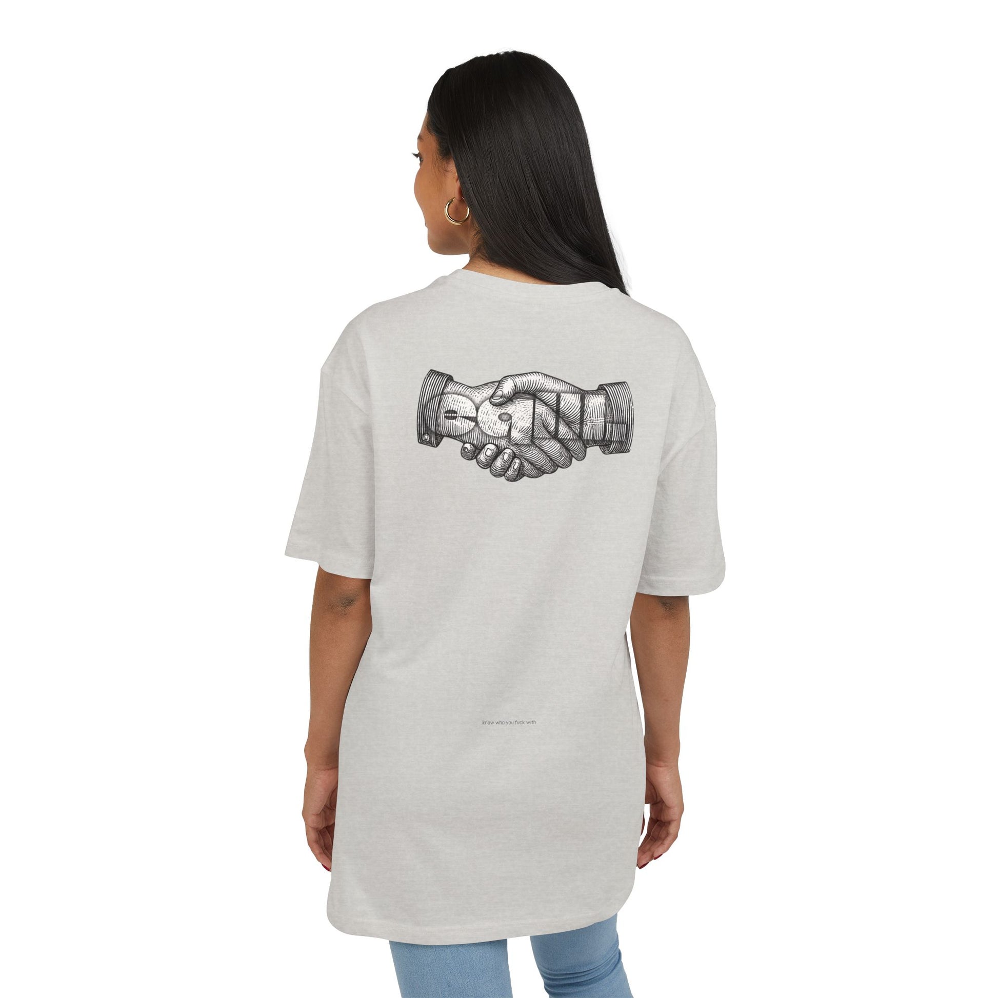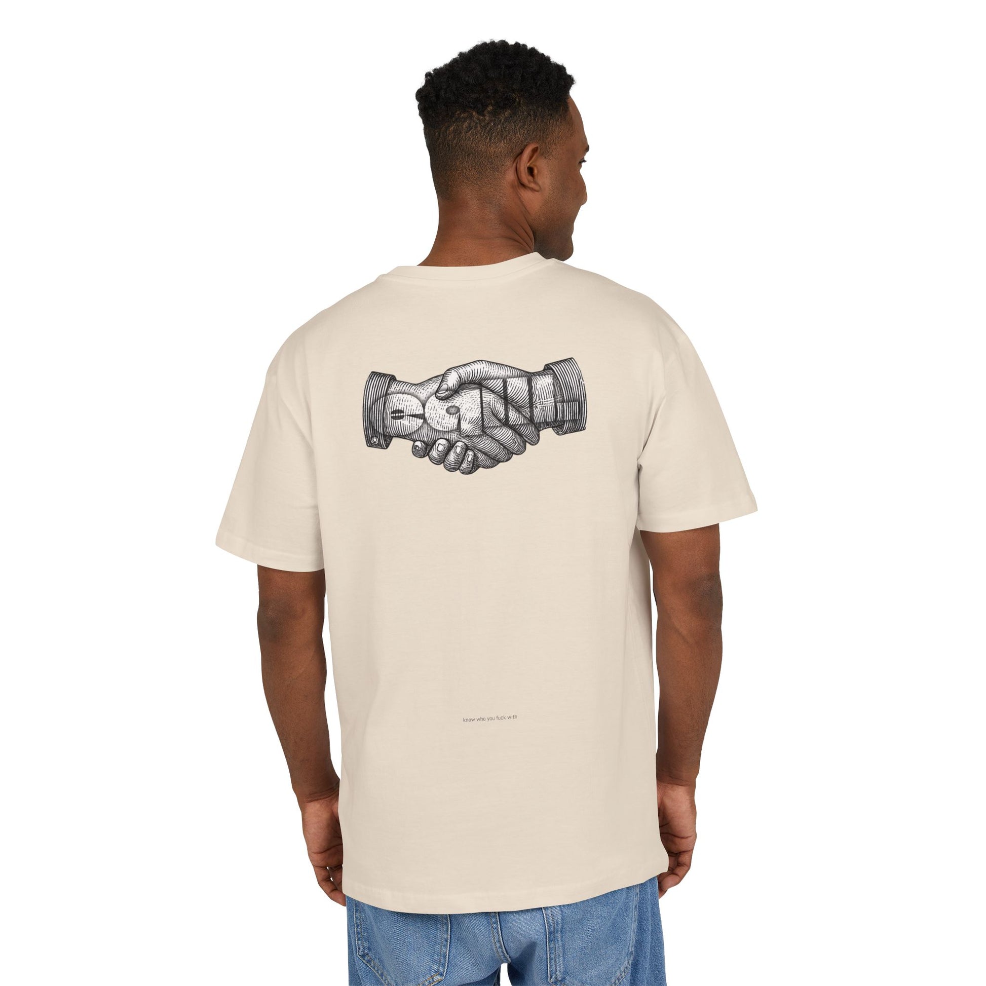 The Unisex Heavy Oversized Tee is made from 100% cotton, offering a soft yet sturdy feel. Designed with a crewneck and dropped shoulders, it provides a wide, relaxed fit for ultimate comfort and style. Perfect for those who love a laid-back, oversized look.