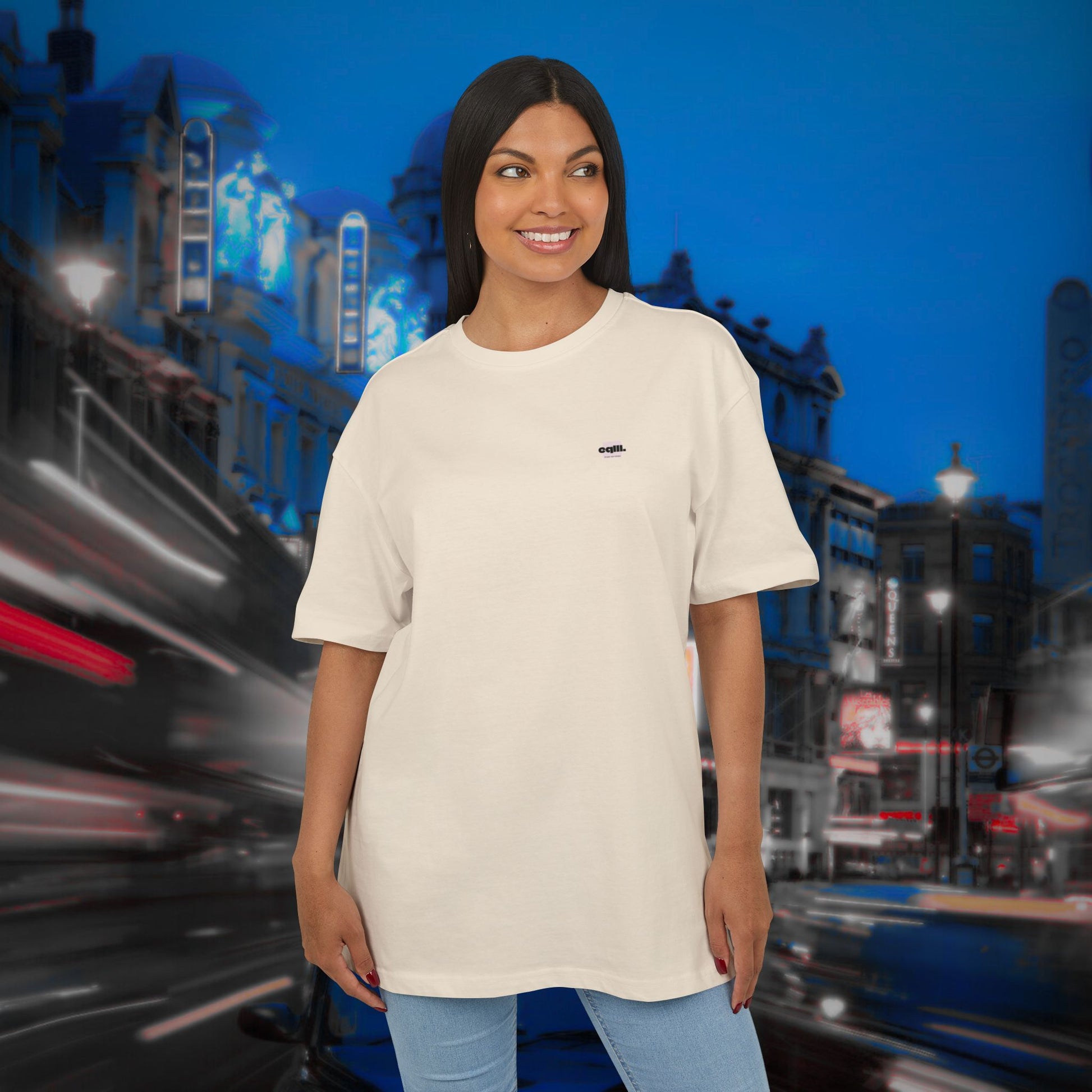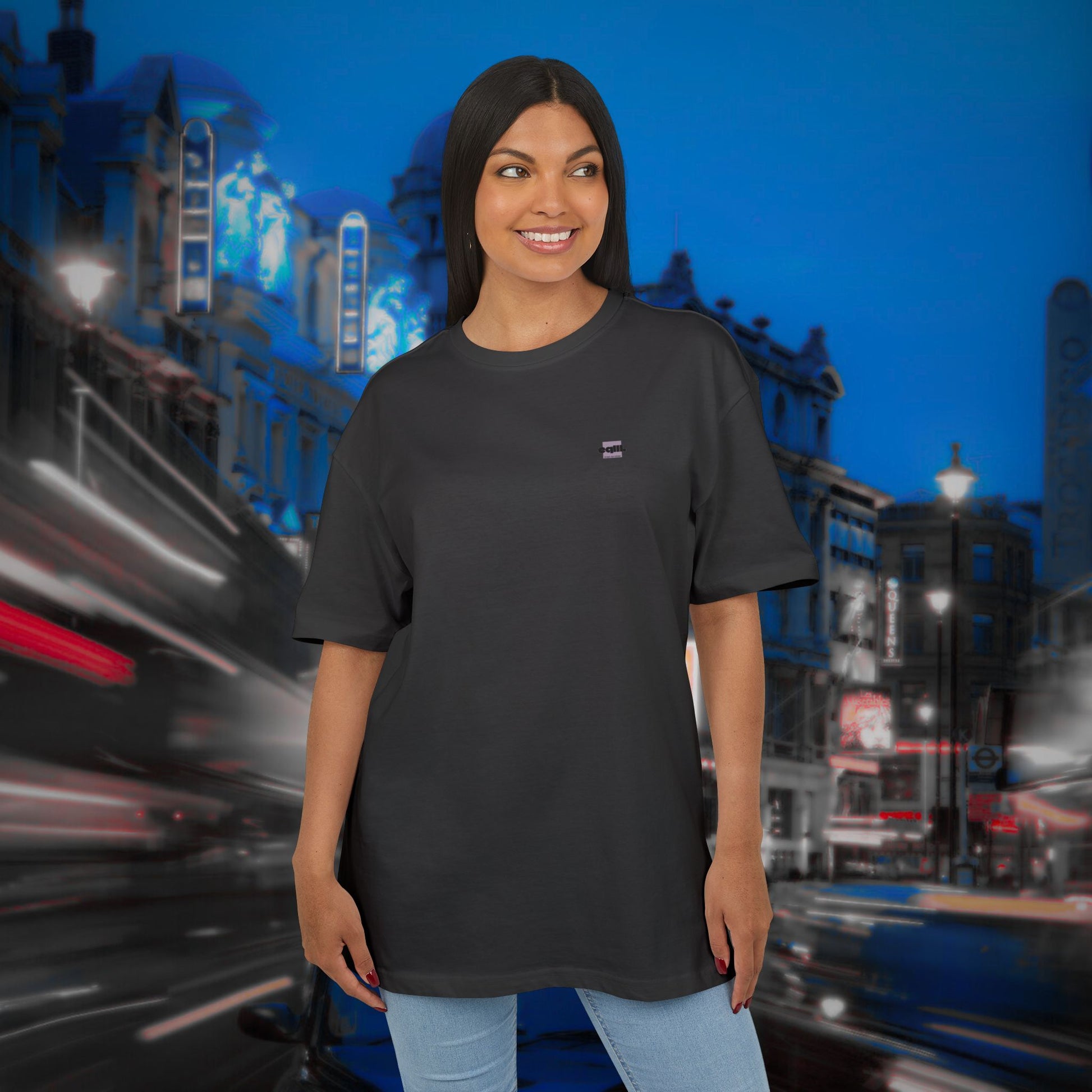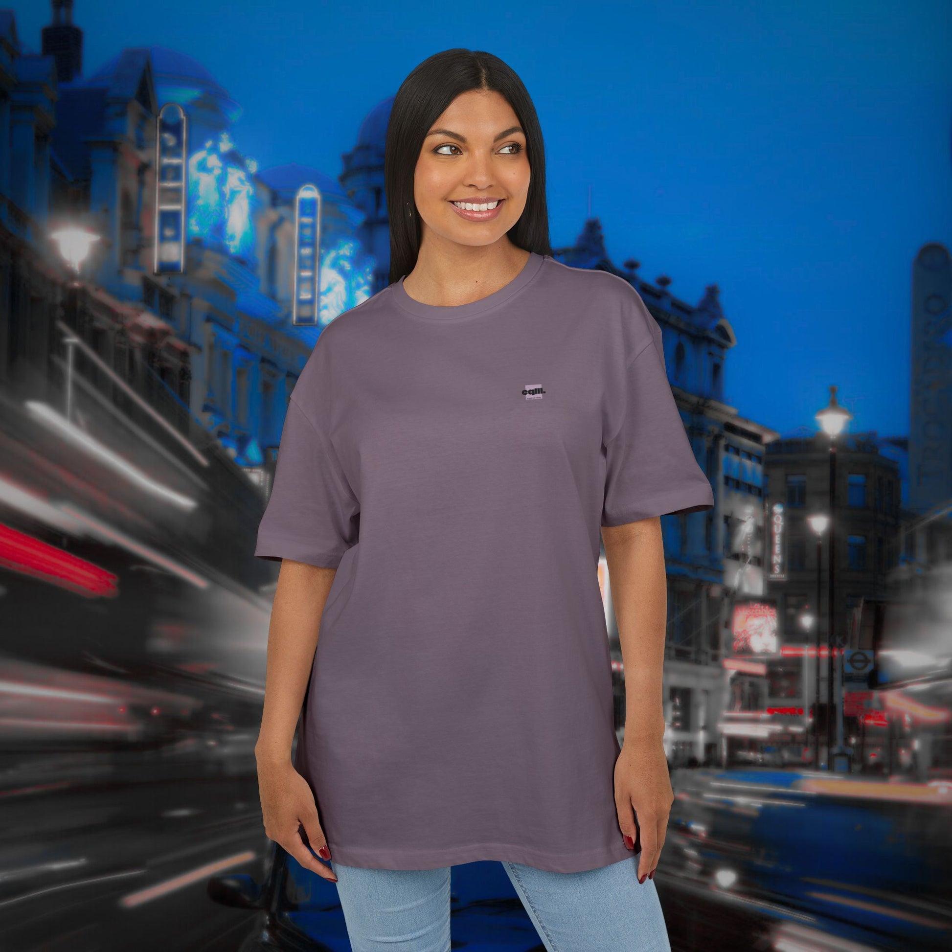 The Unisex Heavy Oversized Tee is made from 100% cotton, offering a soft yet sturdy feel. Designed with a crewneck and dropped shoulders, it provides a wide, relaxed fit for ultimate comfort and style. Perfect for those who love a laid-back, oversized look.
