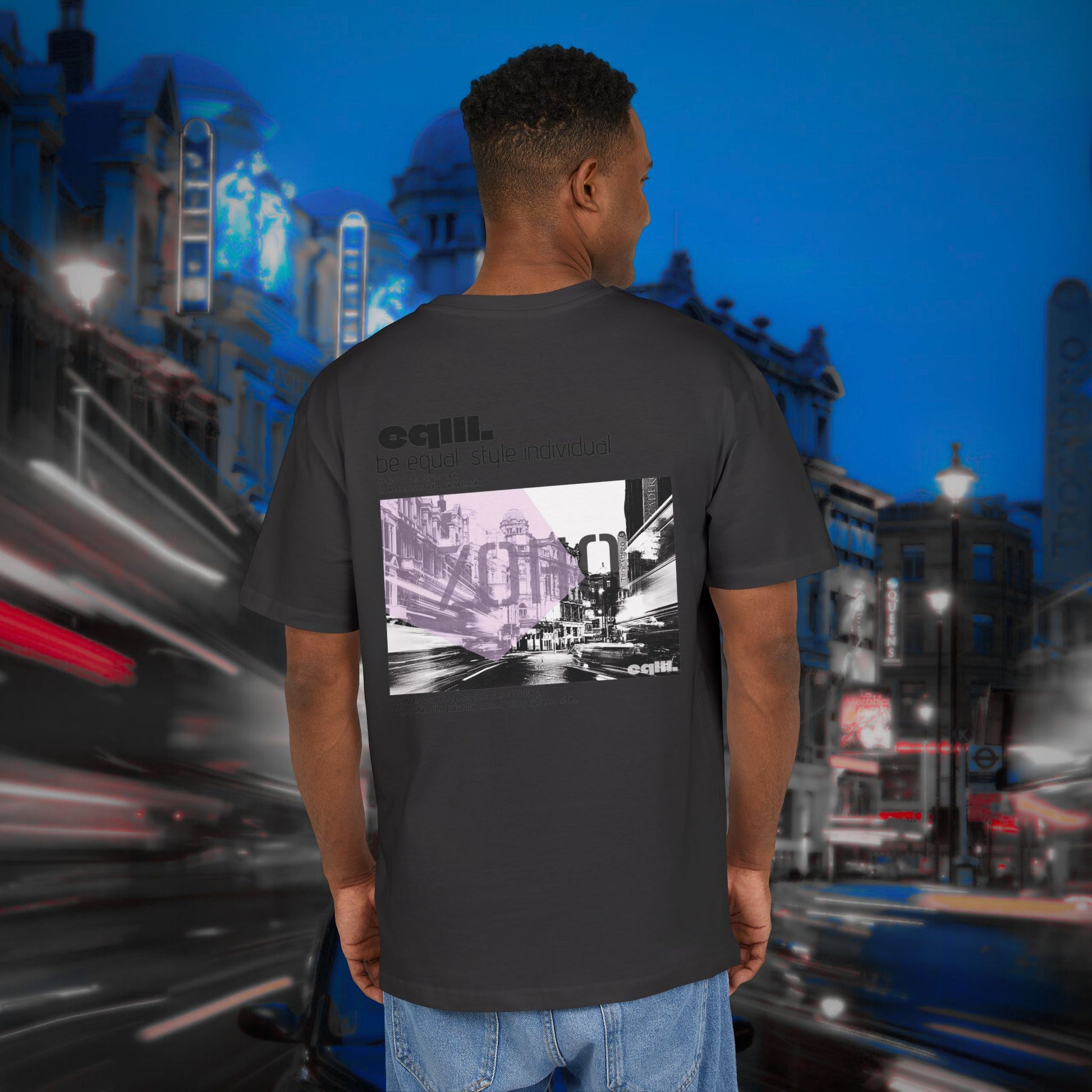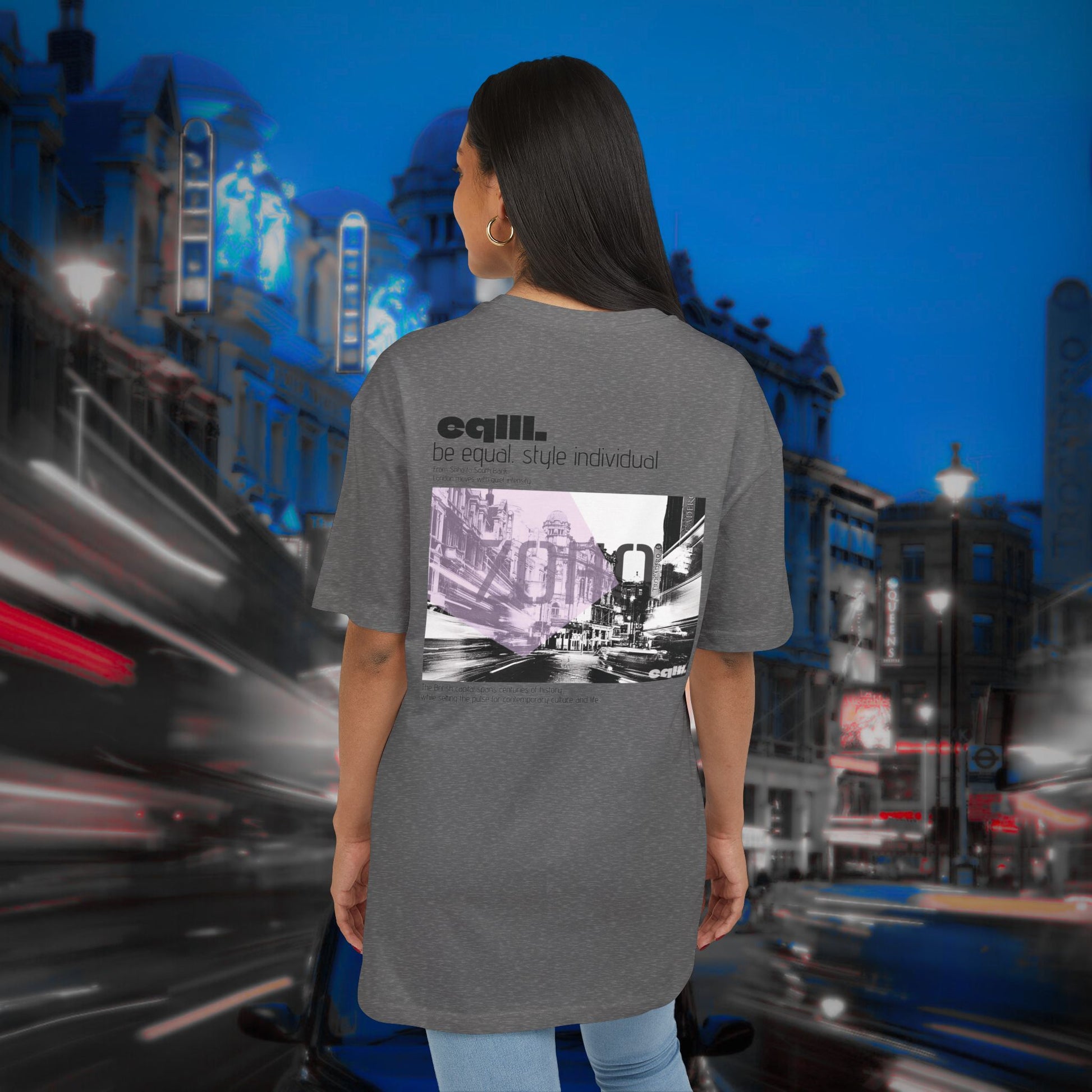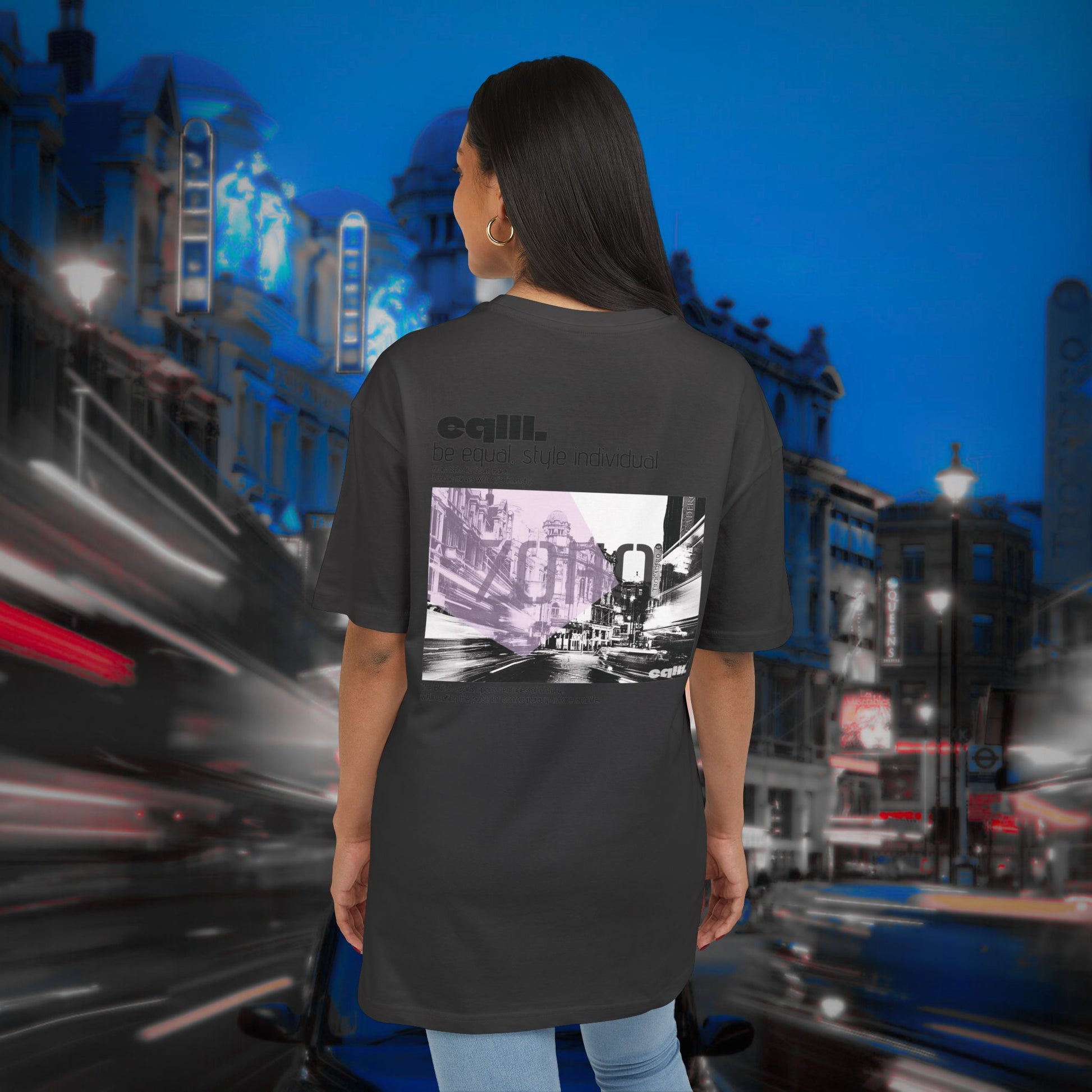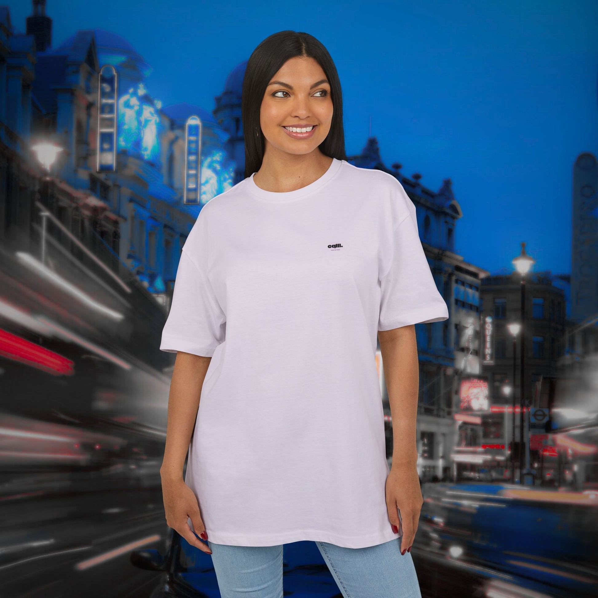 The Unisex Heavy Oversized Tee is made from 100% cotton, offering a soft yet sturdy feel. Designed with a crewneck and dropped shoulders, it provides a wide, relaxed fit for ultimate comfort and style. Perfect for those who love a laid-back, oversized look.
